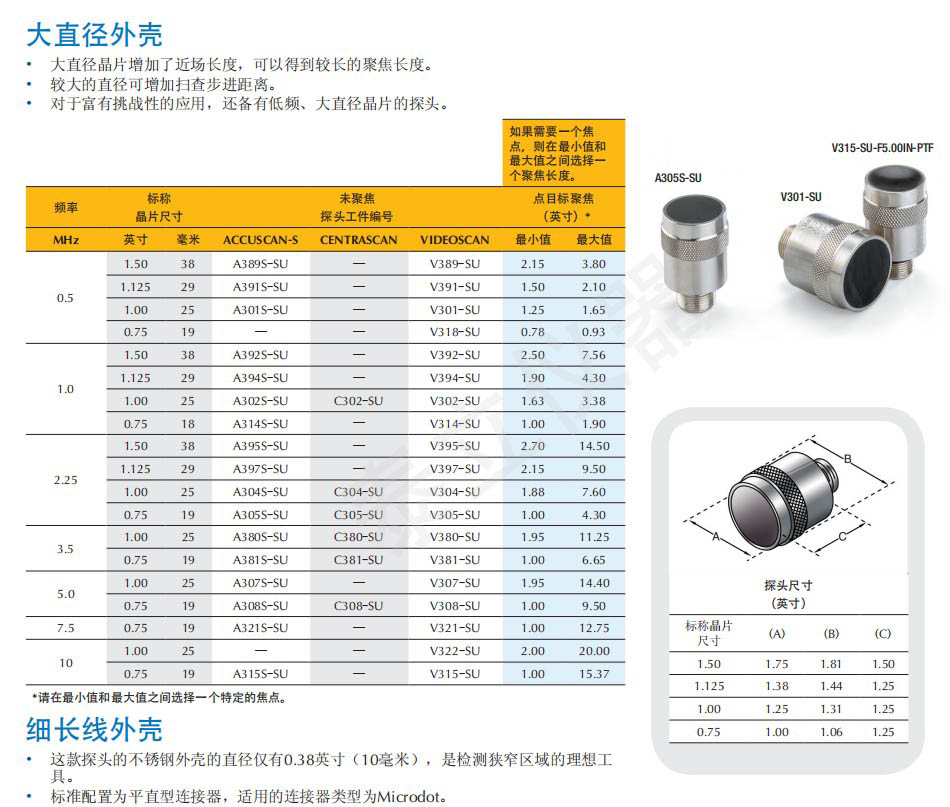 詳細(xì)信息品牌:奧林巴斯Olympus 型號(hào):A系列 / V系列 加工定制:否 適用范圍:可選 工作頻率:1 -15 Mhz 測(cè)量范圍:廣 測(cè)量精度:高 感應(yīng)角度:60 工作溫度:60 ℃ 外形尺寸:6 - 25 mm 感應(yīng)角度:60 工作溫度:60 ℃